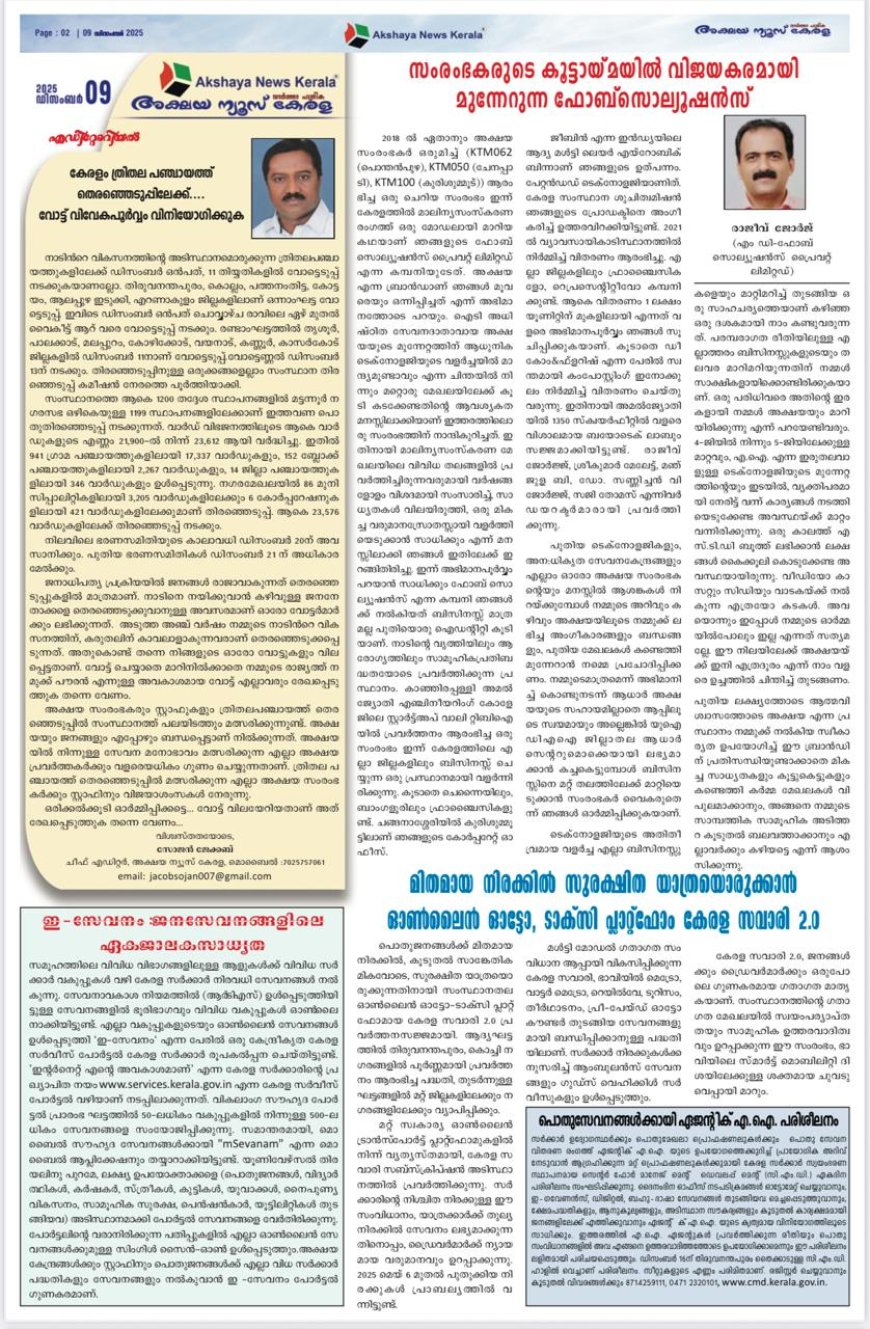 ത്രിതല പഞ്ചായത്ത് തിരഞ്ഞെടുപ്പ് ആസന്നമായ ഈ സമയത്ത് അക്ഷയ ന്യൂസ് കേരള വാർത്ത പത്രികയിൽ കേരളത്തിലെ അക്ഷയ സംരംഭകർ വിവിധ പാർട്ടികളുടെ സ്ഥാനാർത്ഥികളായും സ്വതന്ത്ര സ്ഥാനാർത്ഥികളുമായും മത്സരിക്കുന്നുണ്ട് അവരെ എല്ലാവരെയും പരിചയപ്പെടുത്തുവാൻ ഞങ്ങൾ പരമാവധി ഈ ലക്കത്തിൽ പരിശ്രമിച്ചിട്ടുണ്ട് കൂടാതെ അക്ഷയ സംരംഭകർ നേടിയ വിജയകരമായ നേട്ടങ്ങളും ഉൾപ്പെടുത്തിയിട്ടുണ്ട് തുടർന്നുള്ള മാസങ്ങളിലും ഈ വാർത്ത പത്രിക പബ്ലിഷ് ചെയ്യുന്ന യിലേക്ക് നിങ്ങളെല്ലാവരുടെയും ലേഖനങ്ങളും നേട്ടങ്ങളും ഞങ്ങൾക്ക് ഷെയർ ചെയ്ത് തരുവാൻ വിനീതമായി അഭ്യർത്ഥിക്കുന്നു നിങ്ങൾ തന്ന എല്ലാ പിന്തുണയ്ക്കും നന്ദി അർപ്പിച്ചു കൊണ്ട് ഈ രണ്ടാം ലക്കം നിങ്ങൾക്കായി സമർപ്പിക്കുന്നു