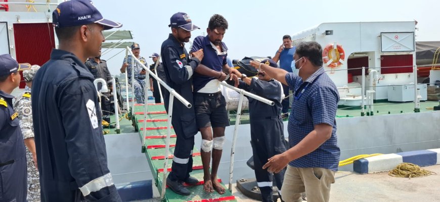 വിഴിഞ്ഞത്ത് നിന്ന് ഏകദേശം 80 നോട്ടിക്കൽ മൈൽ അകലെ അപകടത്തിൽ പെട്ട ബോട്ടിൽ നിന്ന് 09 മത്സ്യത്തൊഴിലാളികളെ ഇന്ത്യൻ കോസ്റ്റ് ഗാർഡ് ഷിപ്പ് 'അനഘ് ' രക്ഷപ്പെടുത്തി വിഴിഞ്ഞത്ത് എത്തിച്ചു.