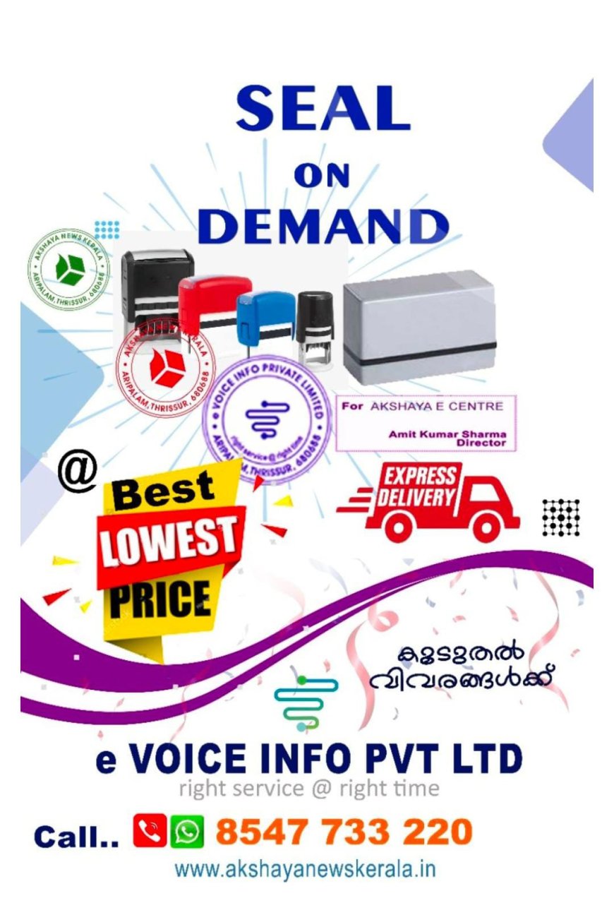 ഇ വോയിസുമായി ടൈഅപ്പ് ആവുക വഴി രണ്ട് ദിവസത്തിനുള്ളിൽ സീൽ നിങ്ങളുടെ സെൻ്ററിൽ കൊറിയർ വഴി ലഭിക്കുന്നു.