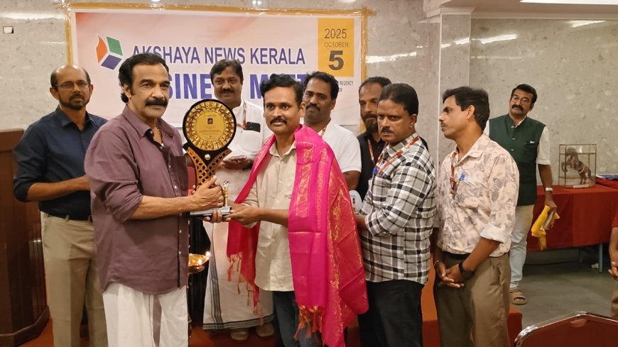 കടലിലെ പ്ലാസ്റ്റിക് മാലിന്യം നീക്കാനുള്ള ശ്രമത്തിൽ അന്താരാഷ്ട്ര അംഗീകാരം ലഭ്യമായ പ്രമുഖ പരിസ്ഥിതി പ്രവർത്തകൻ ബൈജു ലക്ഷ്മിയെയും അക്ഷയ ന്യൂസ് കേരള ബിസിനസ് മീറ്റിൽ ജയരാജ് വാര്യർ ആദരിച്ചു .