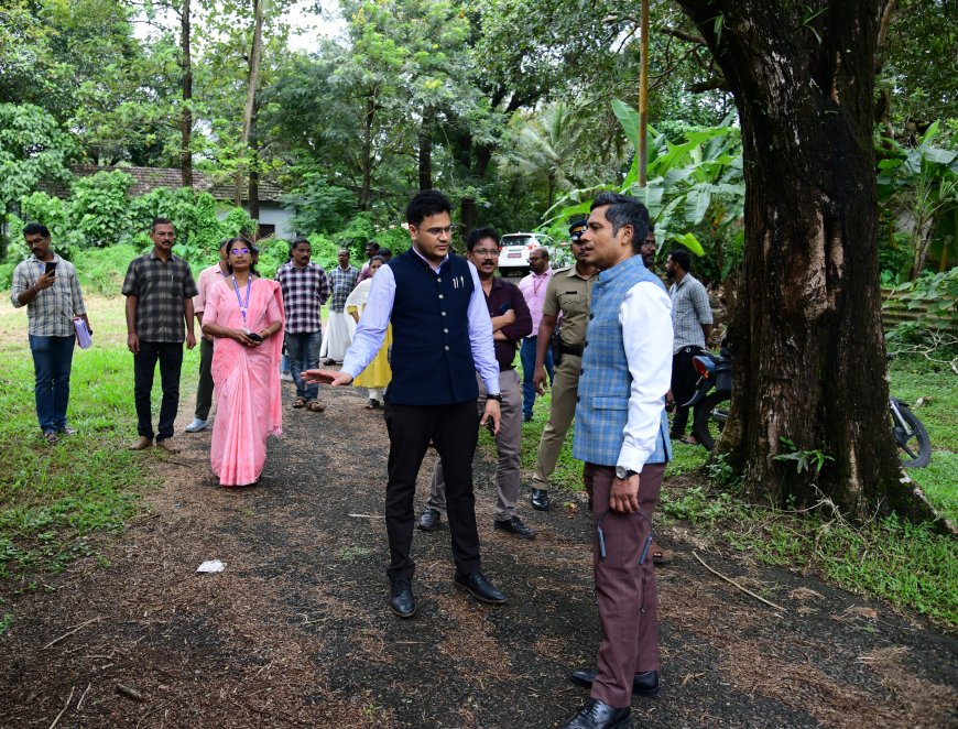 ഇലക്ട്രോണിക് വോട്ടിംഗ് യന്ത്രങ്ങൾ സൂക്ഷിക്കുന്നതിനു വെയർ ഹൗസ് നിർമിക്കുന്നതിനായി കണ്ടെത്തിയ മുട്ടമ്പലത്തെ സ്ഥലം മുഖ്യ തെരഞ്ഞെടുപ്പ് ഓഫീസർ ഡോ. രത്തൻ യു. ഖേൽക്കർ സന്ദർശിക്കുന്നു. ജില്ലാ കളക്ടർ ചേതൻകുമാർ മീണ സമീപം.