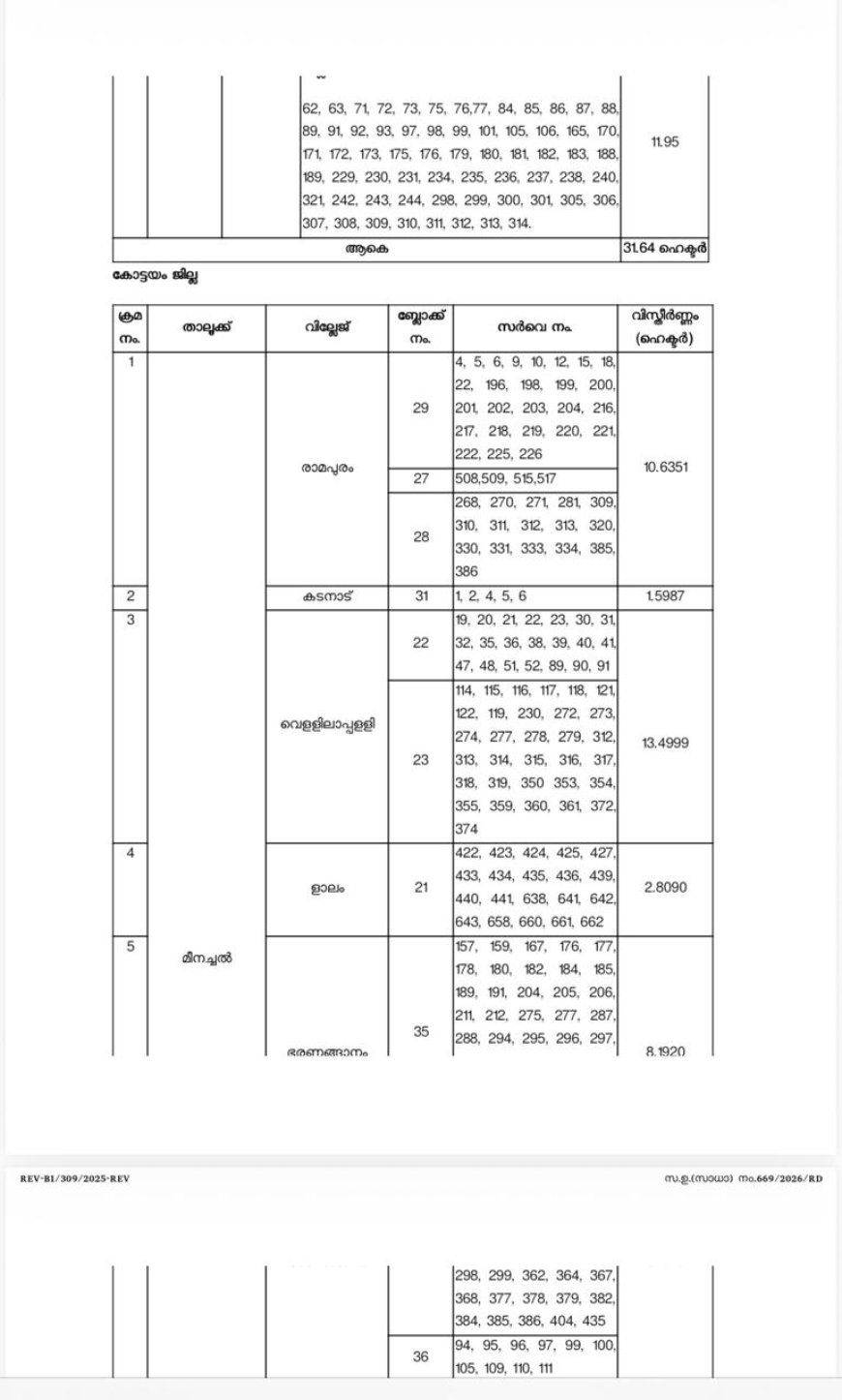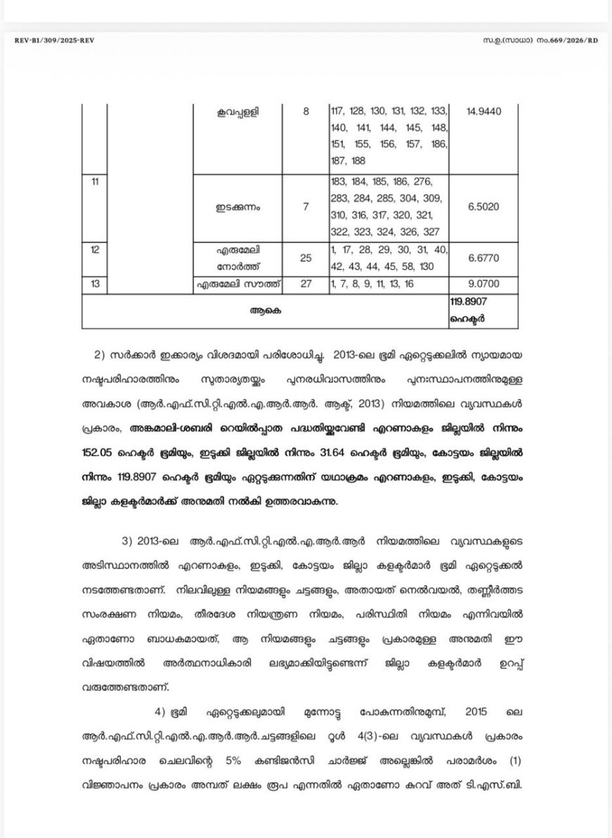 ശബരി റെയിൽവേ ഭൂമി ഏറ്റെടുക്കാൻ ഉത്തരവ് ഇറങ്ങി ,ഏറ്റെടുക്കുന്ന ഭൂമിയുടെ സർവ്വേ നമ്പറുകൾ അറിയാം